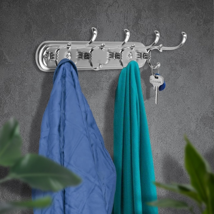 Вешалка ТУНДРА TVF004, металлическая, четырехрожковая, цвет хром