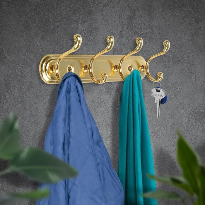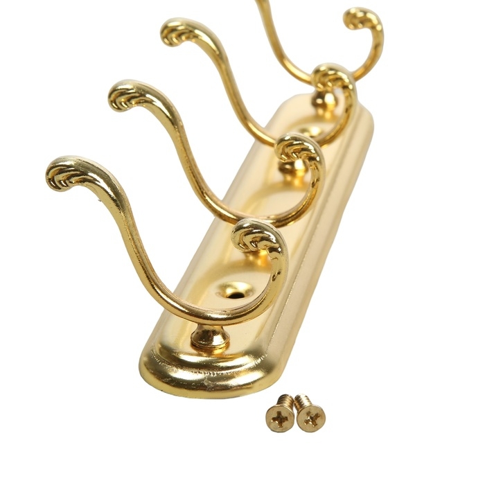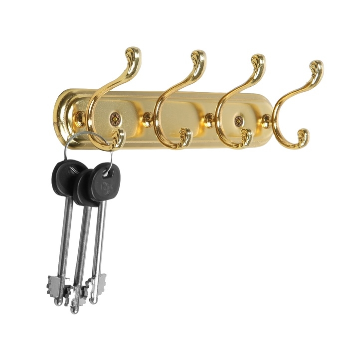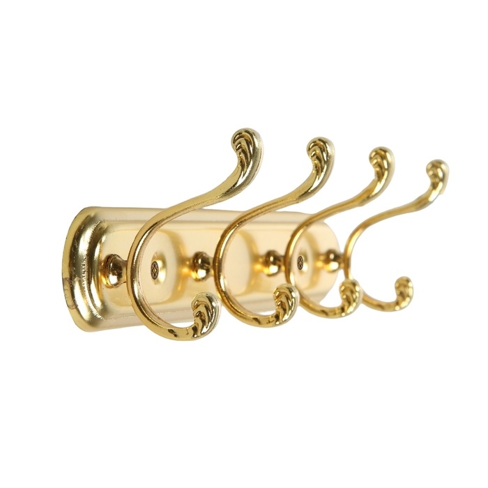Вешалка ТУНДРА TVF001, металлическая, четырехрожковая, цвет золото