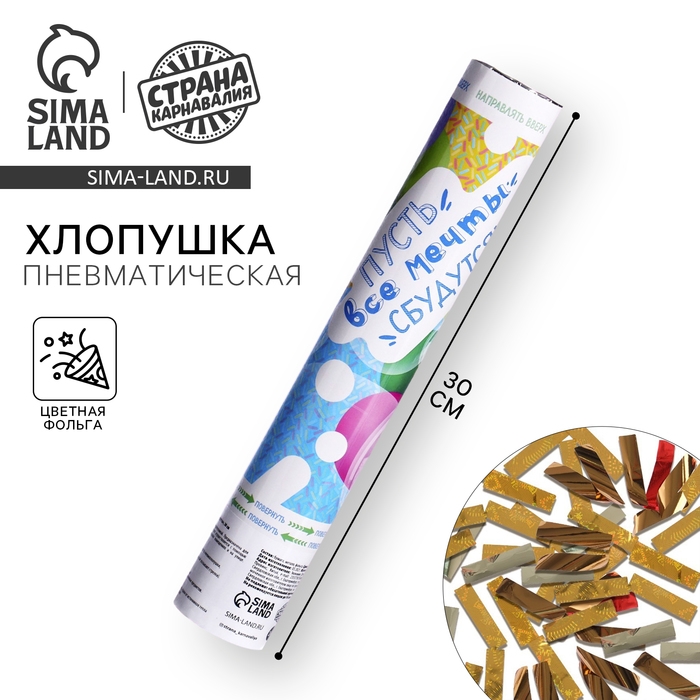 Хлопушка пневматическая «Пусть все мечты сбудутся», 30 см