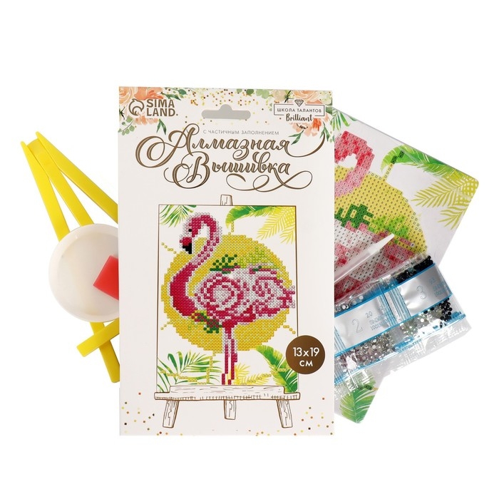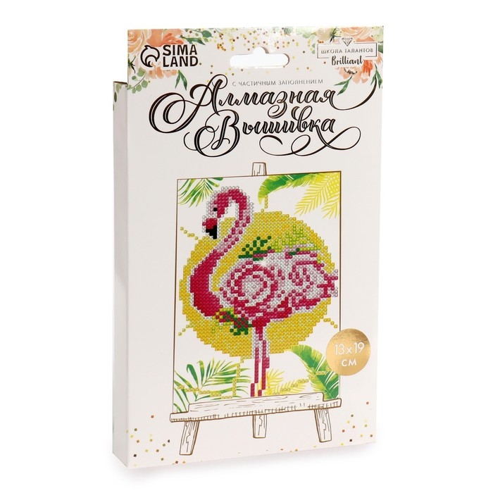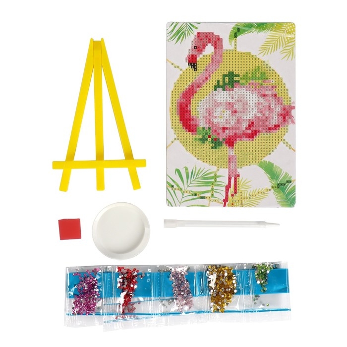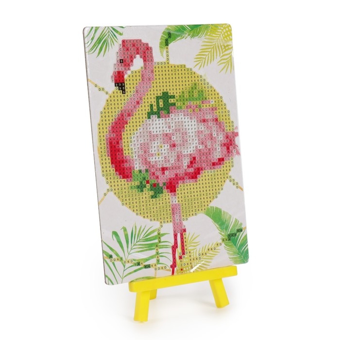 Алмазная мозаика с частичным заполнением на подставке «Фламинго», 13 х 19 см, картон