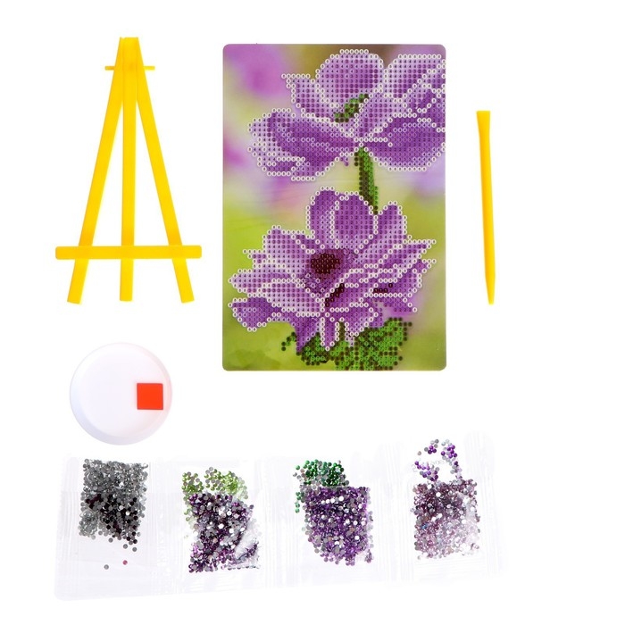 Алмазная мозаика с частичным заполнением на подставке «Цветы», 13 х 19 см, картон