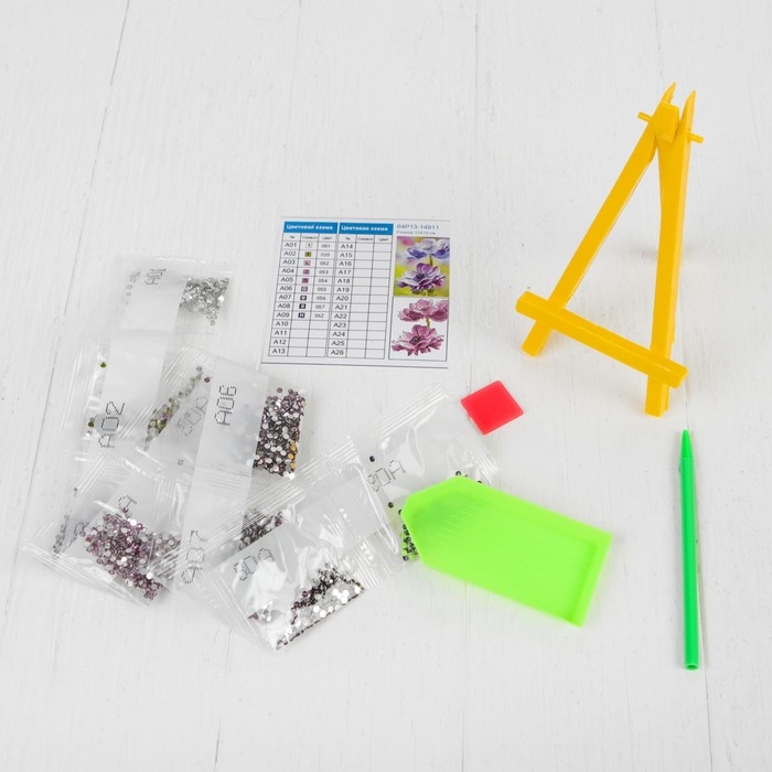 В данном наборе есть небольшой мольберт, с ним готовое творение можно удобно расположить на полке или столе без дополнительных креплений.