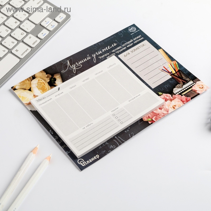 Планер на магнитах с отрывными листами «Учителю: Лучший учитель», 50 л., 15 х 20 см (размер части для заполнения 10 х 13 см)