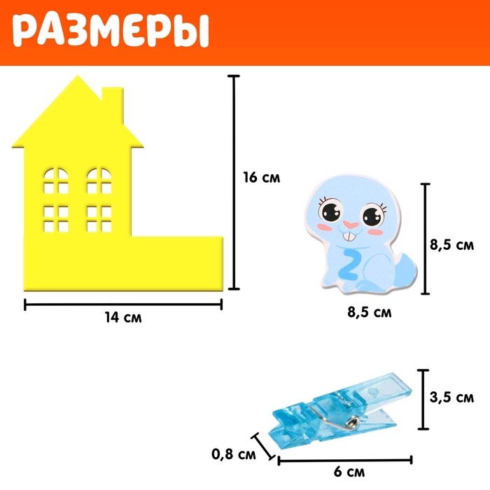 - Взрослый описывает картинку, рассказывает, что это за зверь. Затем указывает на цифру, малыш вслух произносить название и прикрепляет столько прищепок, сколько необходимо для данной картинки.