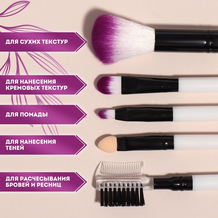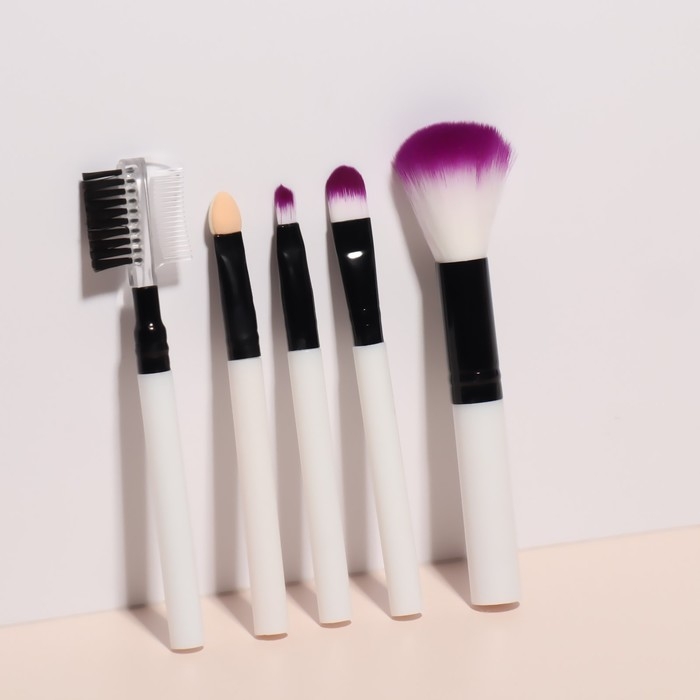 Набор кистей для макияжа, 5 предметов, цвет чёрный/белый