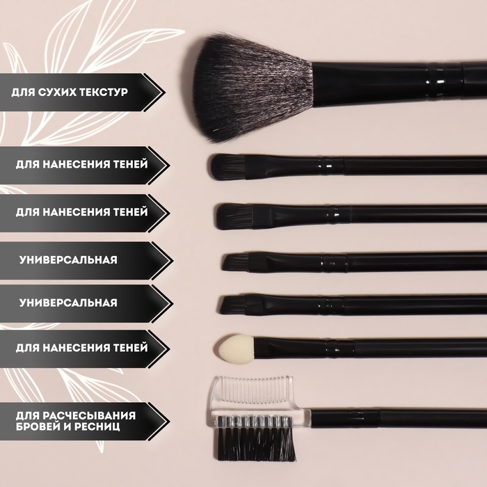 Набор кистей для макияжа, 7 предметов, чехол на завязках, цвет чёрный