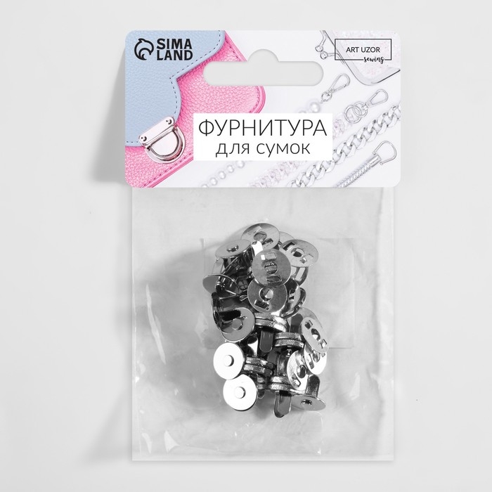 Кнопки магнитные, пришивные, d = 10 мм, 10 шт, цвет серебряный