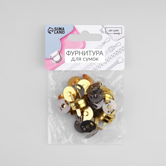 Кнопки магнитные, d = 18 мм, 10 шт, цвет золотой