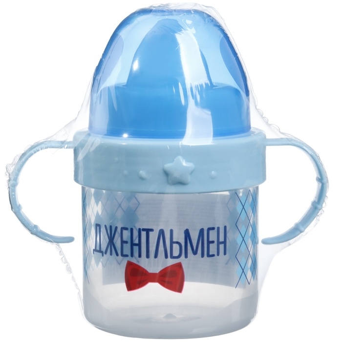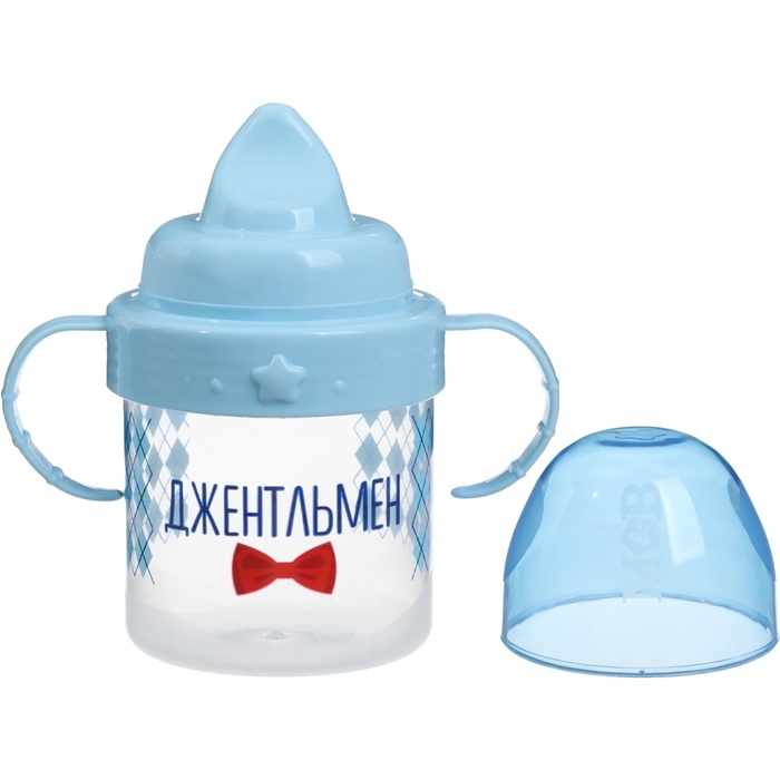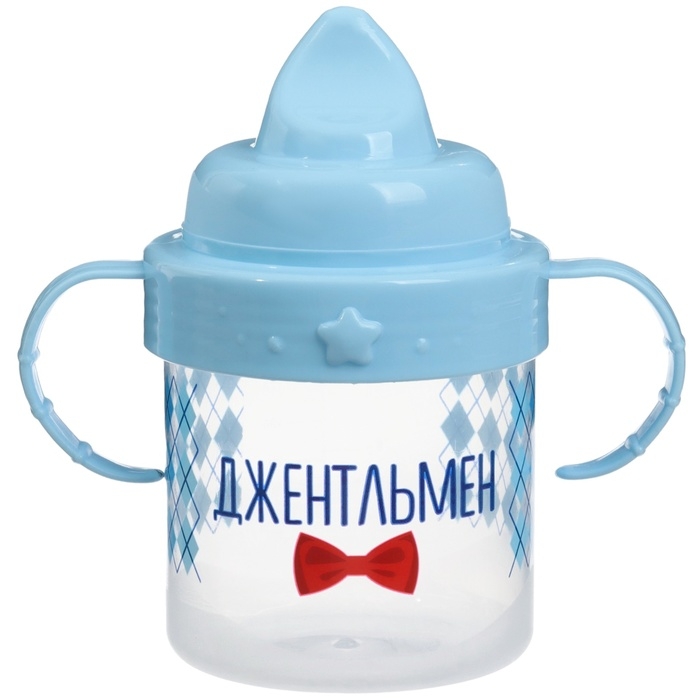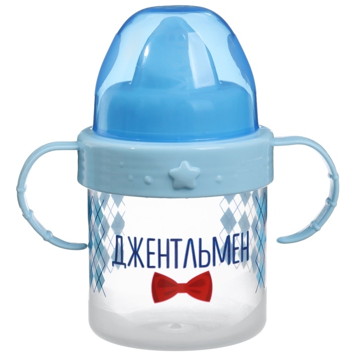Поильник детский с твёрдым носиком «Джентльмен», 150 мл., с ручками, цвет голубой