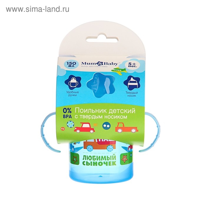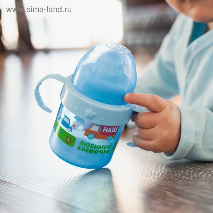 Поильник детский с твёрдым носиком «Сыночек», 150 мл., с ручками, цвет голубой