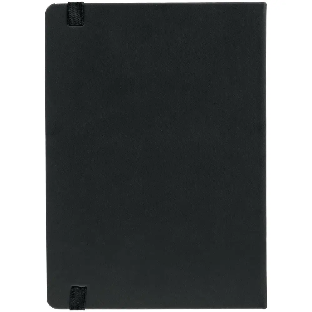 Ежедневник с твердой обложкой, выполнен из материала Latte, черный АА, обрез черного цвета, дополнен ляссе черного цвета и резинкой с металлическим шильдом.
