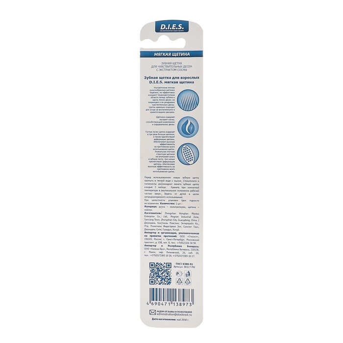 Зубная щётка D.I.E.S. Pine Wood — идеальное решение для чувствительных дёсен. Мягкая щетина бережно очищает зубы, не повреждая эмаль, а экстракт сосны укрепляет дёсны и оказывает противовоспалительное действие.