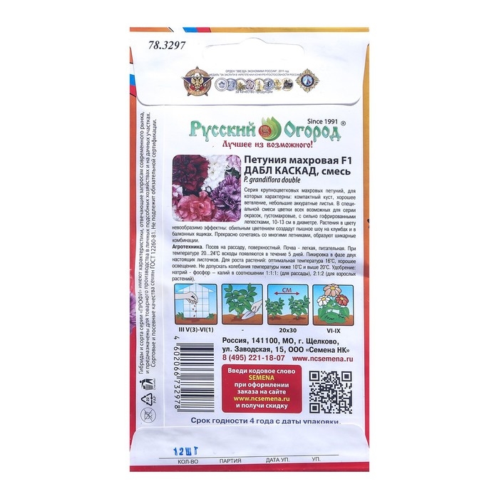 Семена цветов Петуния "Дабл каскад" F1, смесь, серия Профи, О, 12 шт