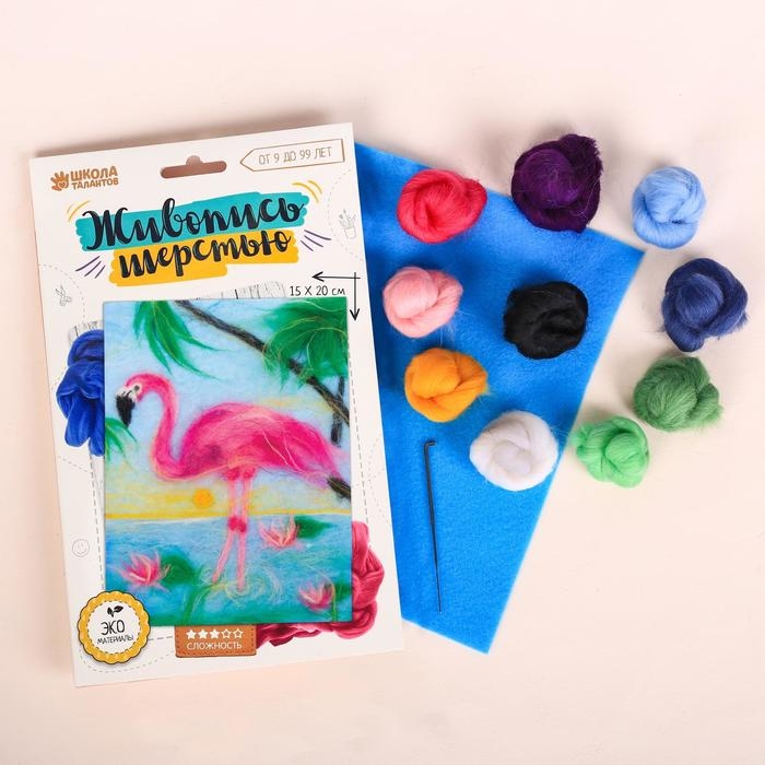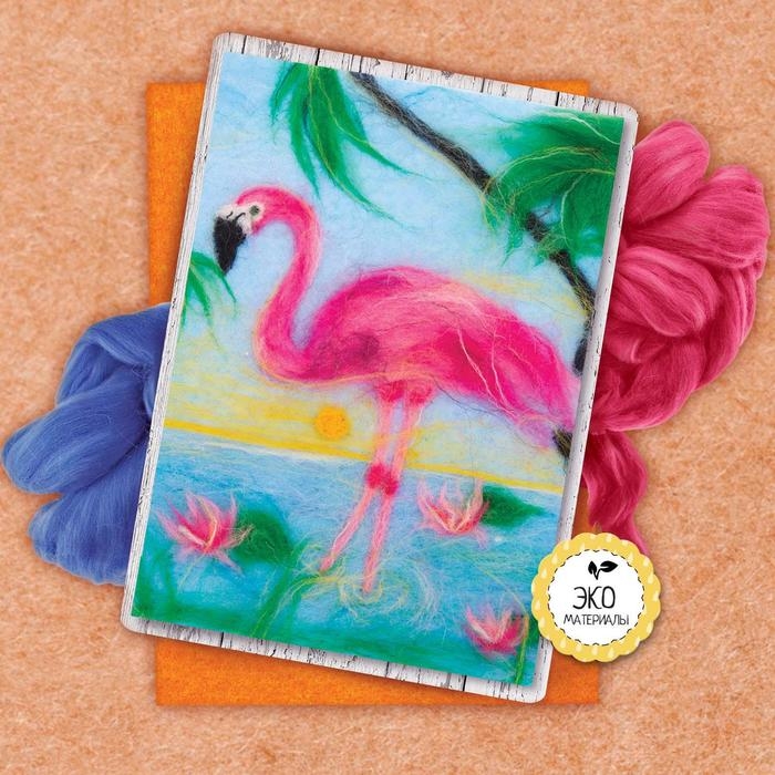 Валяние из шерсти. Картина «Фламинго», А5, набор для творчества