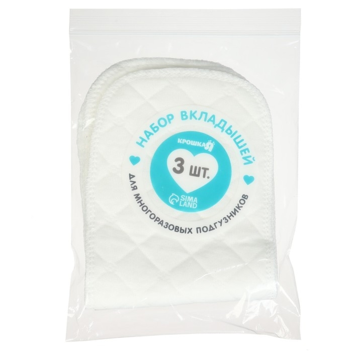 Набор вкладышей в многоразовый подгузник, 3-х слойный, 30 см, 3 шт., Хлопок, Крошка Я