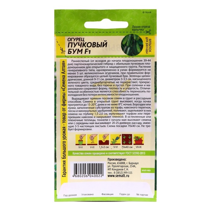 Семена Огурец "Пучковый бум" F1, раннеспелый, партенокарпический, цп, 5 шт
