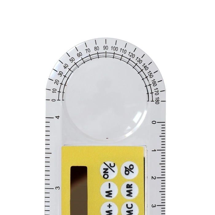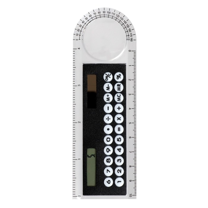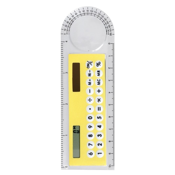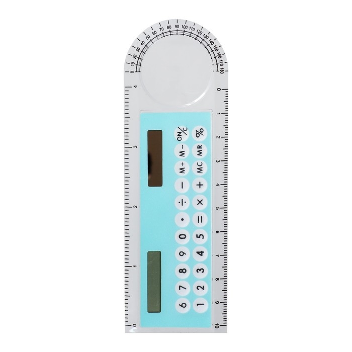 Калькулятор - линейка, 10 см, 8 - разрядный, корпус прозрачного цвета, с транспортиром, работает от света, МИКС