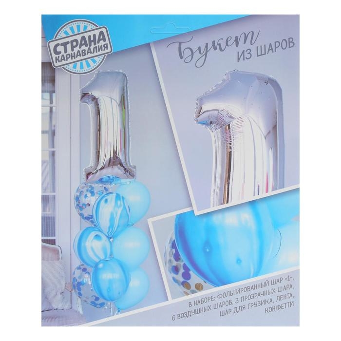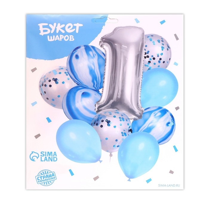 Набор воздушных шаров "1 годик", для мальчика, латекс, фольга, 10 шт.