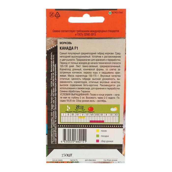 Ценность гибрида: высокая урожайность, выравненность корнеплодов, отличные вкусовые качества, высокое содержание бета-каротина. Семена обработаны Тирамом.
