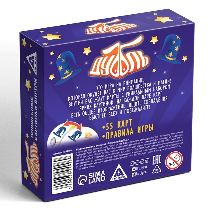 Настольная игра на реакцию и внимание «Дуббль. Волшебный», 55 карт, 5+