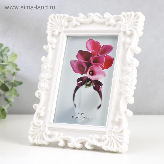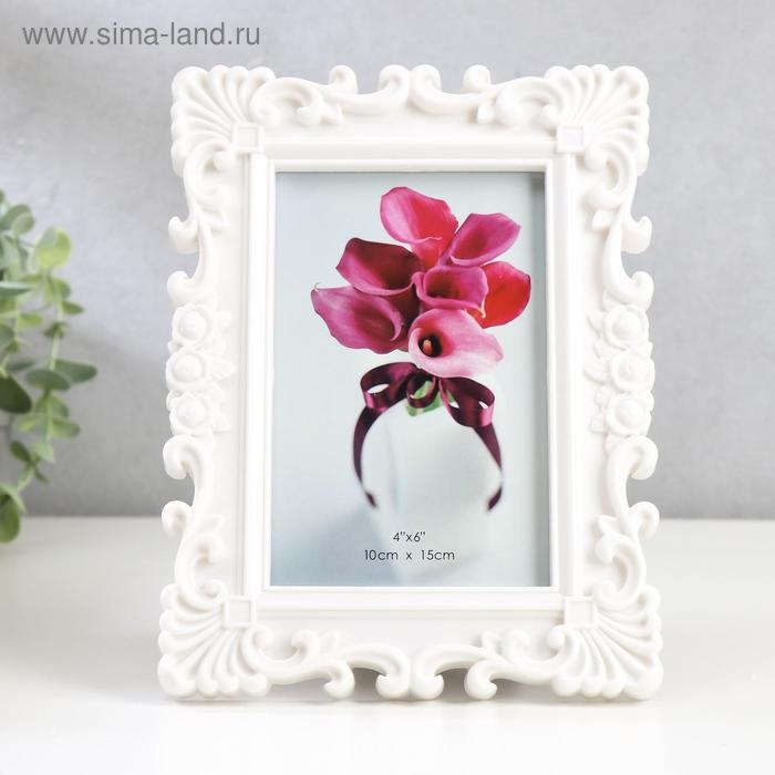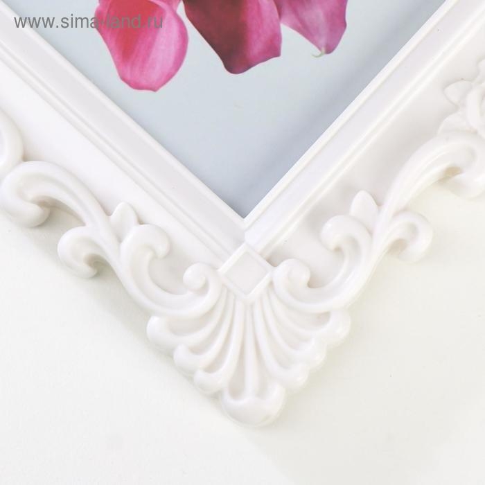 Фоторамка пластик 10х15 см "Розочки и завитки роза" белая 20,5х15,5 см