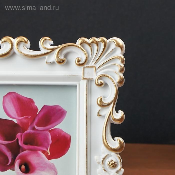 Фоторамка пластик 10х15 см "Розочки и завитки роза" белая с золотом 20,5х15,5 см