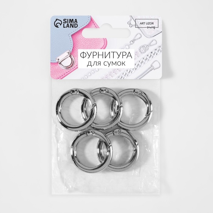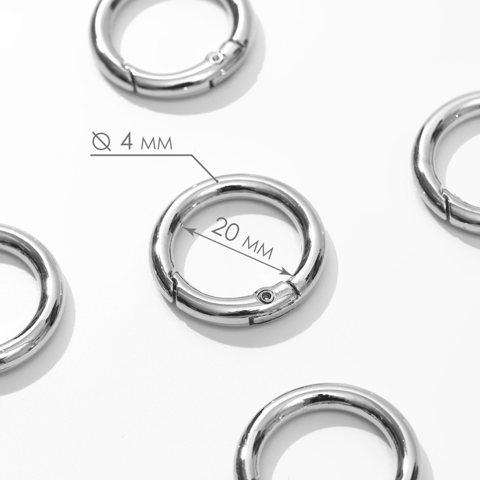 Кольцо-карабин, d = 20/28 мм, толщина - 4 мм, 5 шт, цвет серебряный