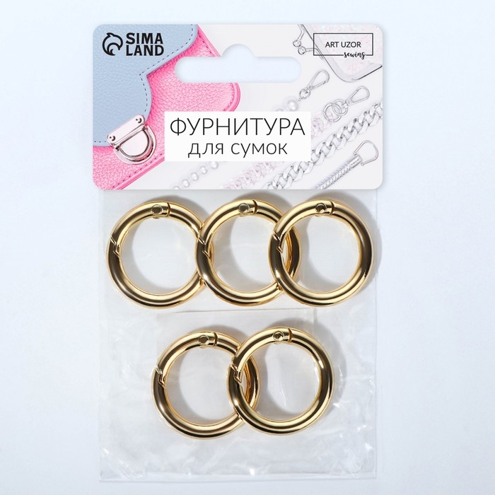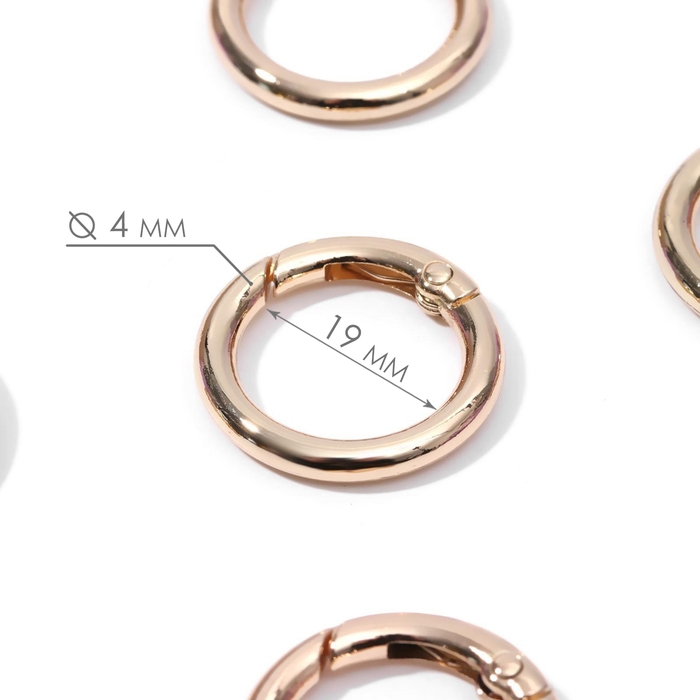 Кольцо-карабин, d = 19/27 мм, толщина - 4 мм, 5 шт, цвет золотой