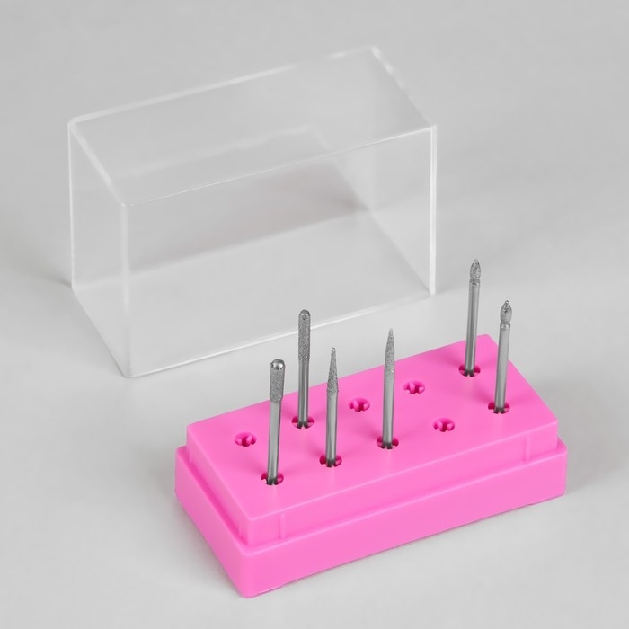 Подставка под фрезы, прямоугольная, 10 отделений, 8 × 3,6 см, с крышкой, в картонной коробке, цвет розовый/прозрачный
