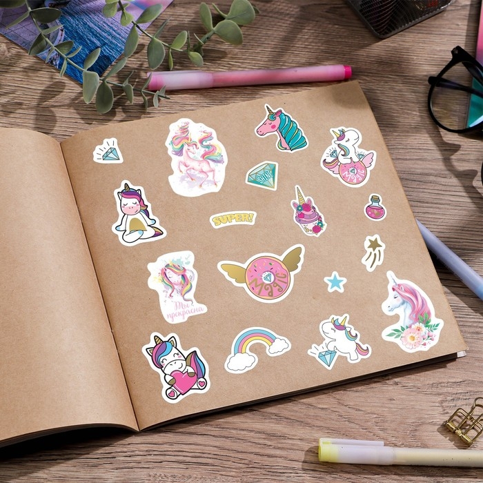 Наклейки детские в стикербуке «#ЕДИНОРОГИ», 8 листов, 14 х 21 см