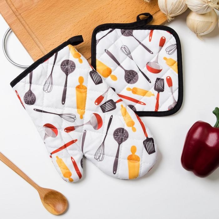 Кухонный набор Доляна «Поварешка»: прихватка 16х16 см, варежка 25х16 см, 100% п/э