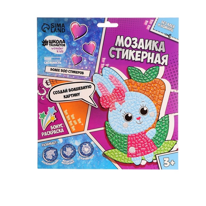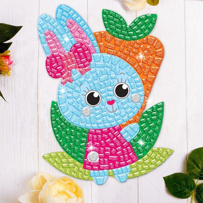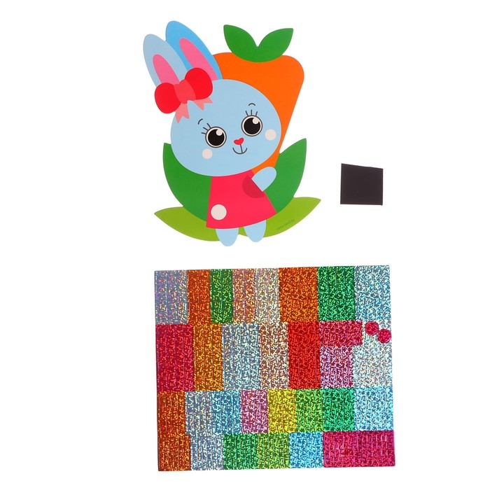Аппликация стикерами форменная «Зайка и морковь», набор для творчества, стикерная мозаика