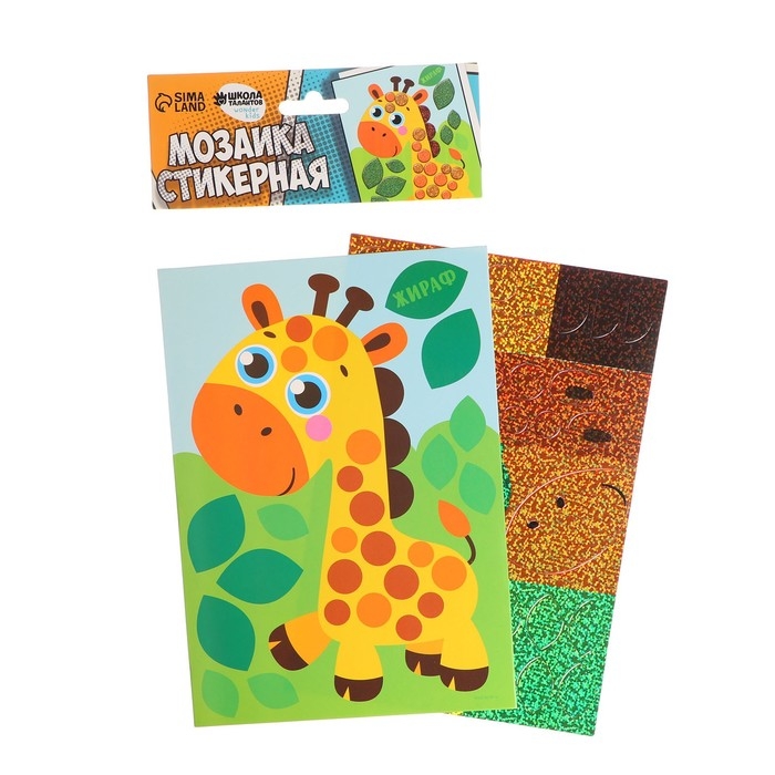 Аппликация стикерами форменными стикерами «Жираф», набор для творчества, стикерная мозаика