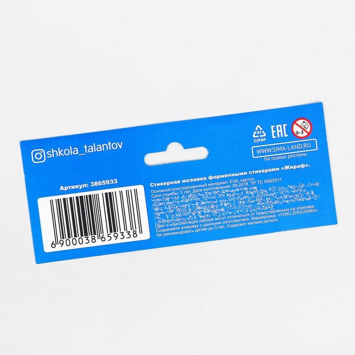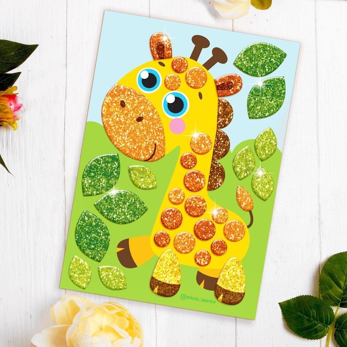 Аппликация стикерами форменными стикерами «Жираф», набор для творчества, стикерная мозаика — это простая и эффектная аппликация!