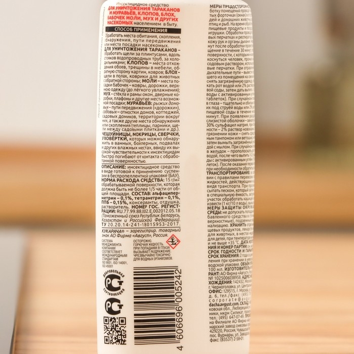 Средство для уничтожения тараканов, чешуйниц, мокриц "Кукарача" спрей, 100 мл