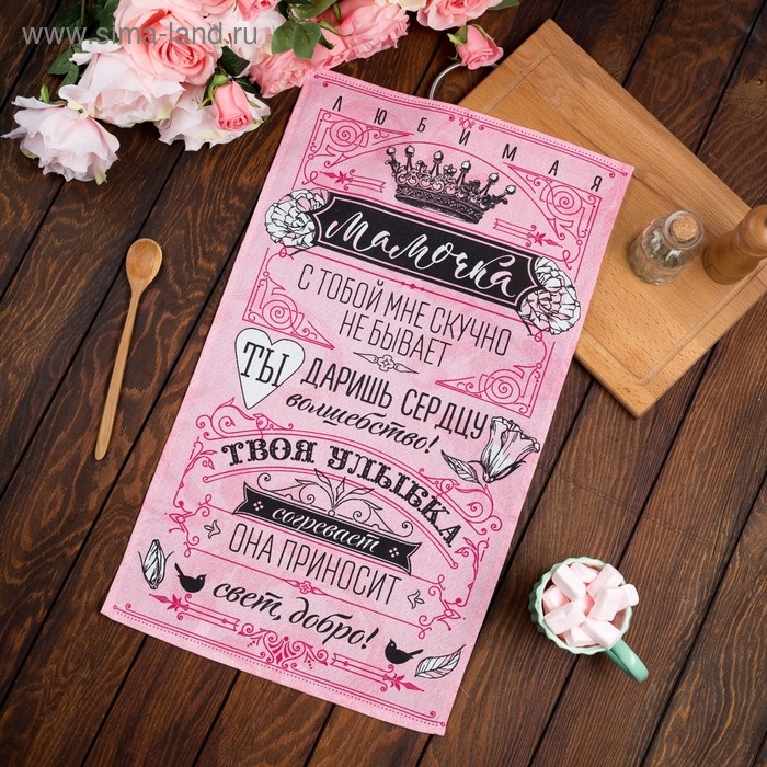 Полотенце кухонное Доляна «Мамочка» 34х60 см, рогожка, 100% хлопок 160 гр/м