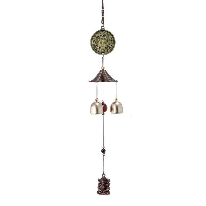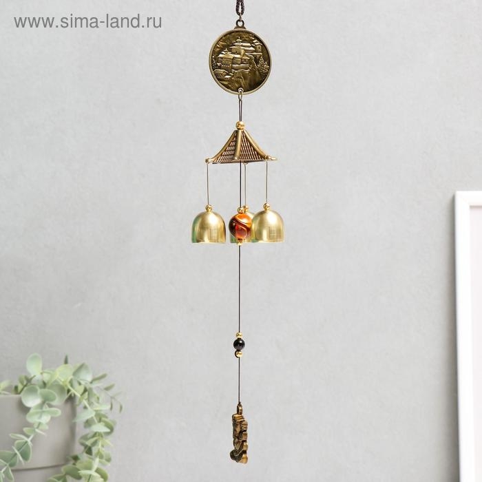 Музыка ветра металл "Будда на монете" 3 колокольчика 45 см