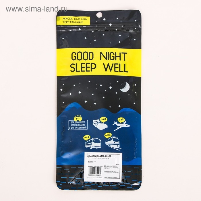 Маска для сна 3D, на липучке, 22,5 × 9 см, цвет чёрный