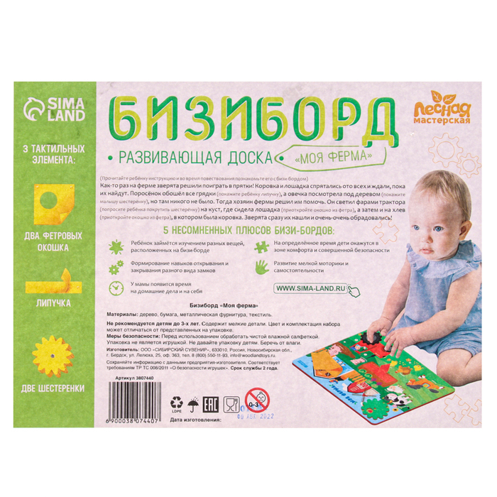 Бизиборд «Моя ферма» 27х20 см