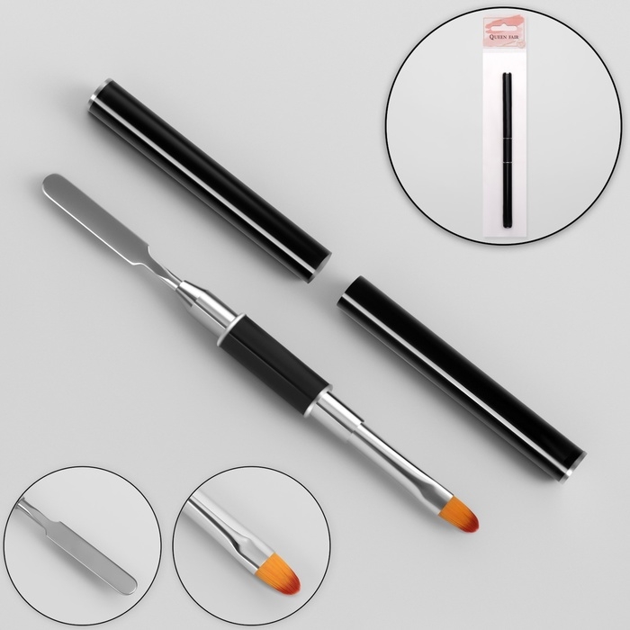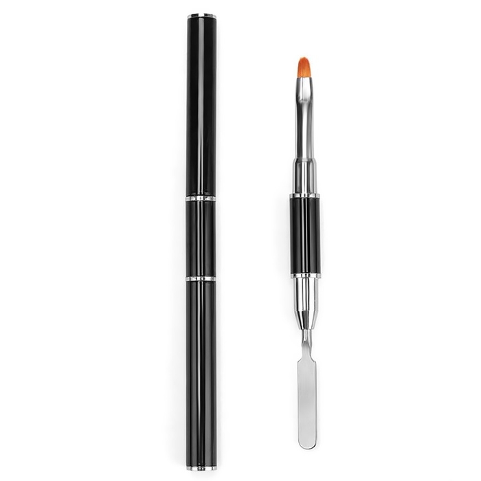 На одном конце инструмента расположена прямая плоская кисть из синтетического ворса. Ей можно распределять, формировать и моделировать материал на ногте. С другой стороны — шпатель для аккуратного и экономичного отделения (срезания) нужной порции полигеля при выдавливании его из тюбика.