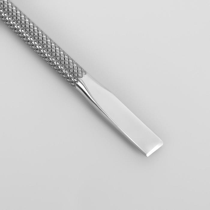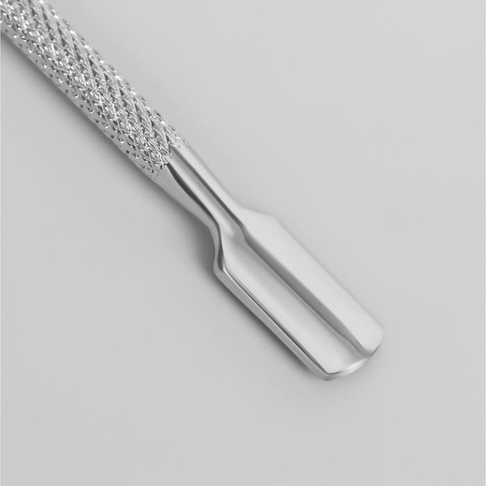 Шабер – это двусторонний инструмент, предназначенный для очистки ногтя, отодвигания кутикулы и удаления тонкой кожицы у основания пластины. Он сделан из металла, хорошо заточен и не травмирует ручки. Рукоятка удобно лежит в руке, а качественный материал обеспечит долгий срок службы.