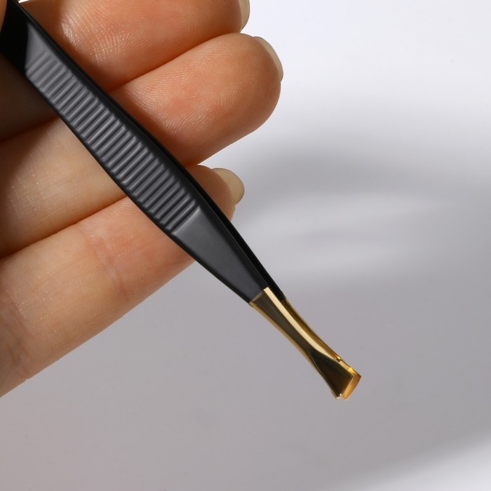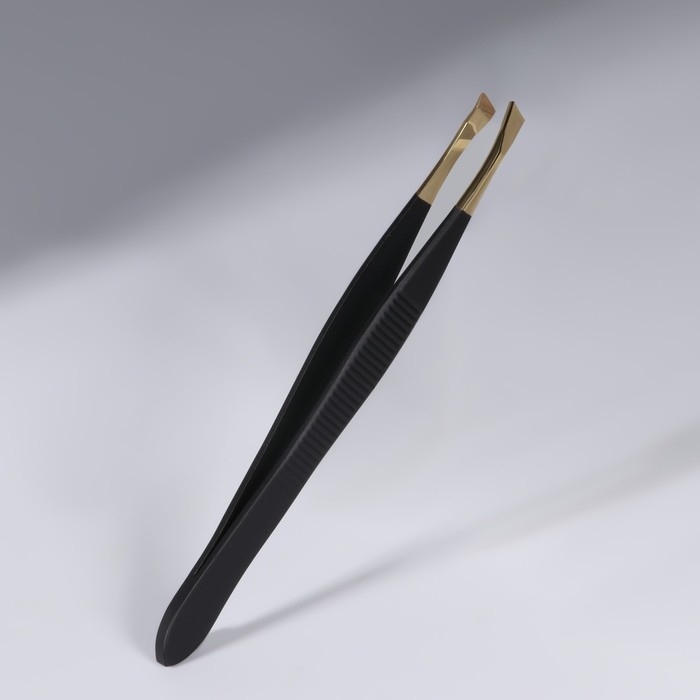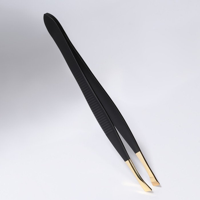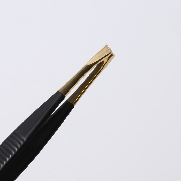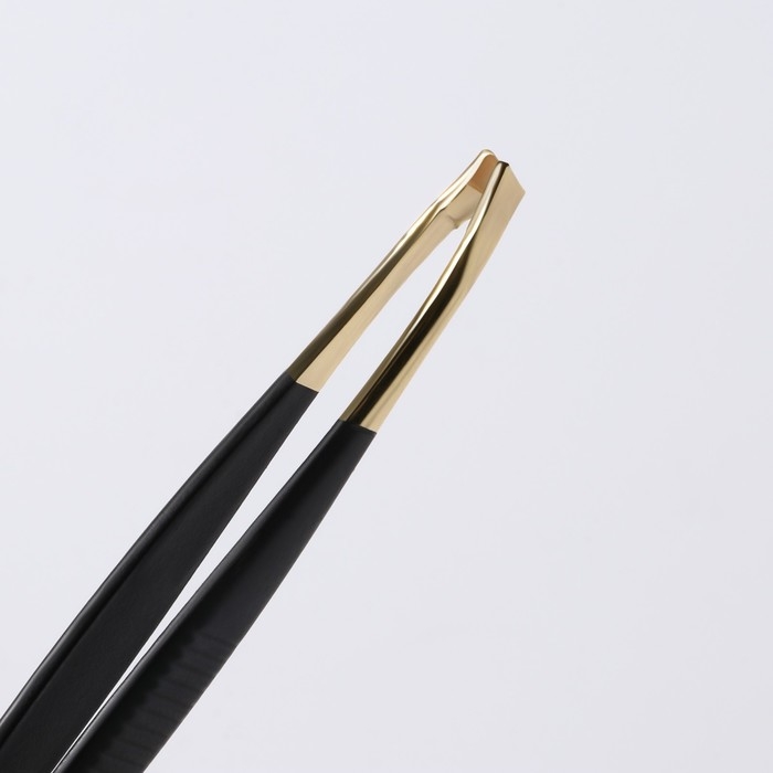 Пинцет скошенный, узкий, 8,5 см, цвет чёрный/золотистый