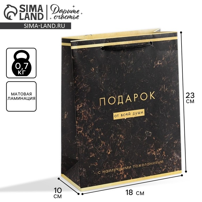 Пакет подарочный ламинированный вертикальный, упаковка, «От всей души», MS 18 х 23 х 8 см