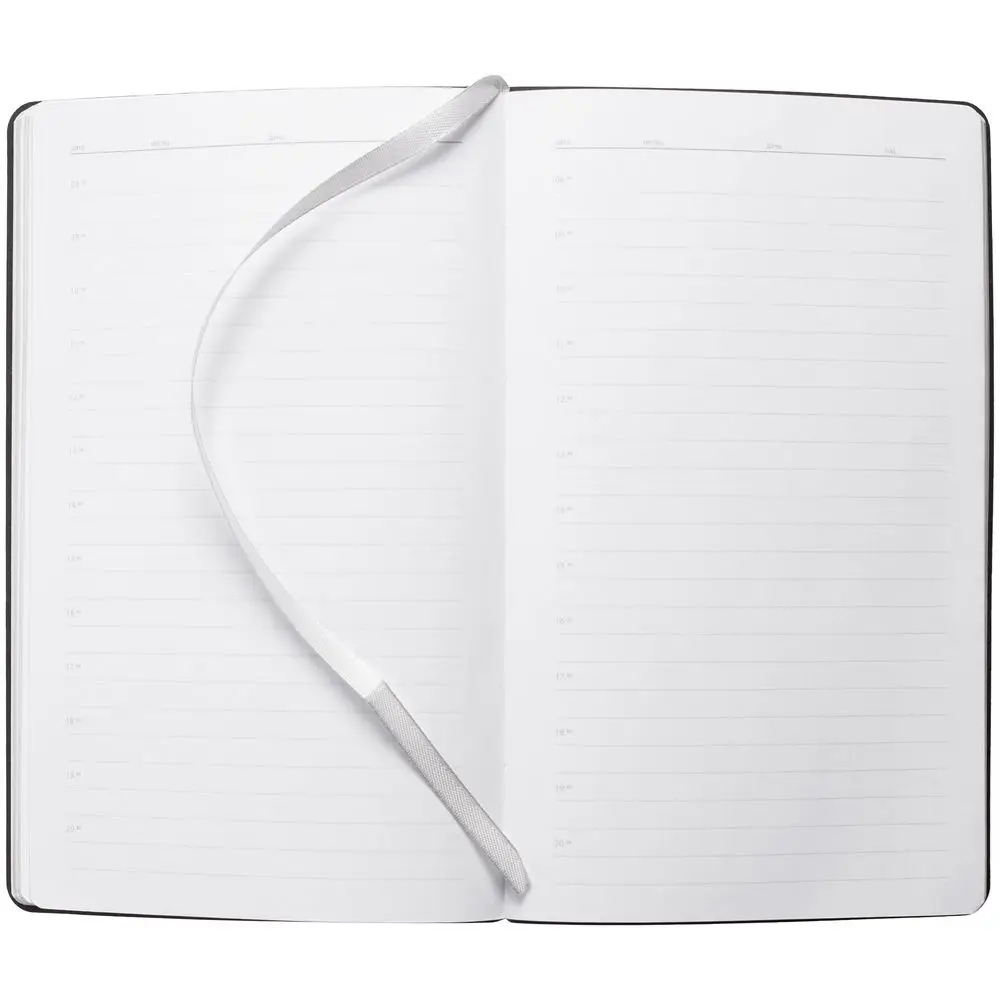 Ежедневник с гибкой обложкой и металлическим корешком, выполнен из материала Soft Touch Ultra, синий НН, дополнен серебристым обрезом блока и ляссе.