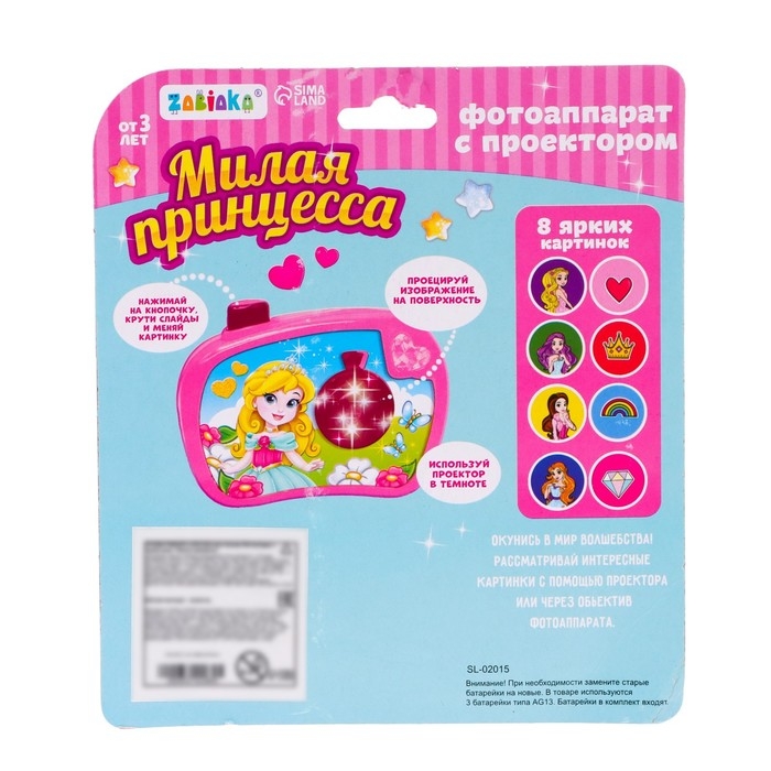 Фотоаппарат с проектором «Милая принцесса», 8 картинок, световые эффекты, цвет розовый