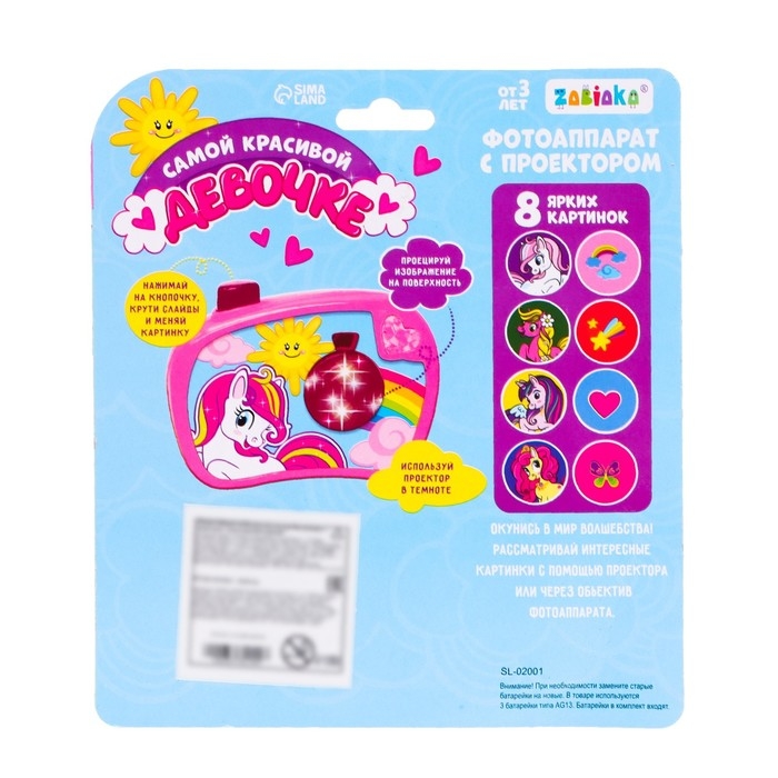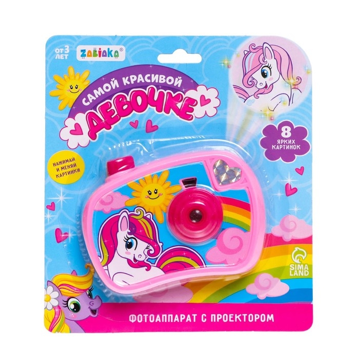 Фотоаппарат с проектором «Самой красивой девочке» привлечёт внимание трогательным дизайном и надолго займёт малыша. Игрушка научит создавать изображения, поможет развить усидчивость, воображение и абстрактное мышление.