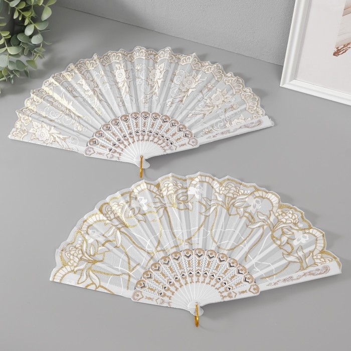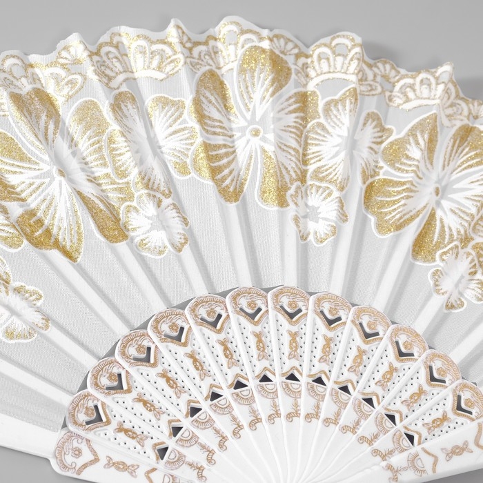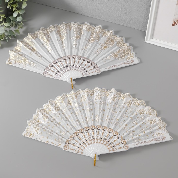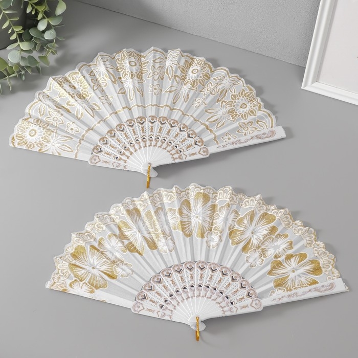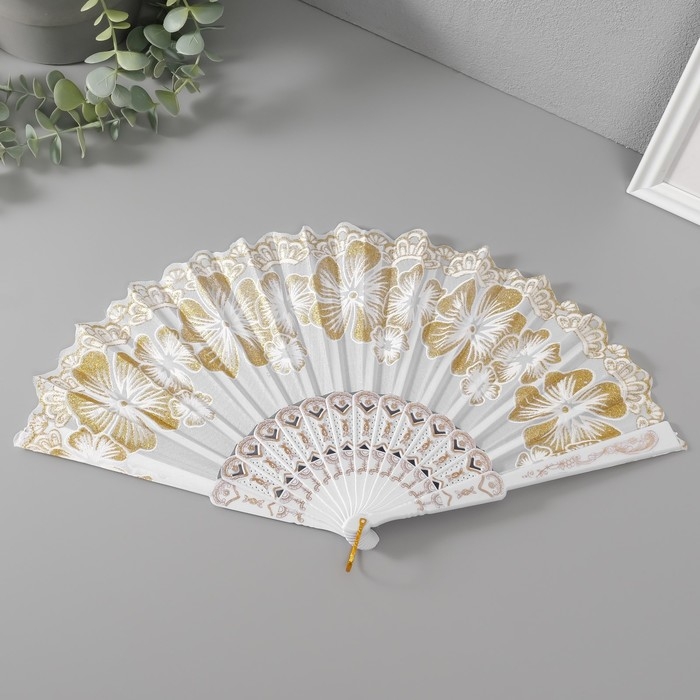 Веер пластик, текстиль "Золотые узоры" блёстки МИКС 22,5 см