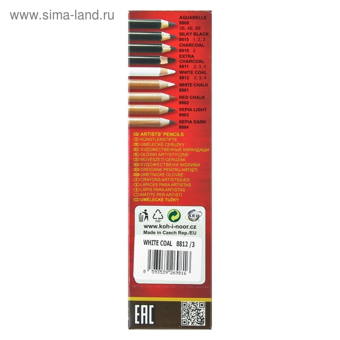 Уголь белый в карандаше Koh-I-Noor GIOCONDA 8812, набор разных твёрдостей № 2, 3, 4
