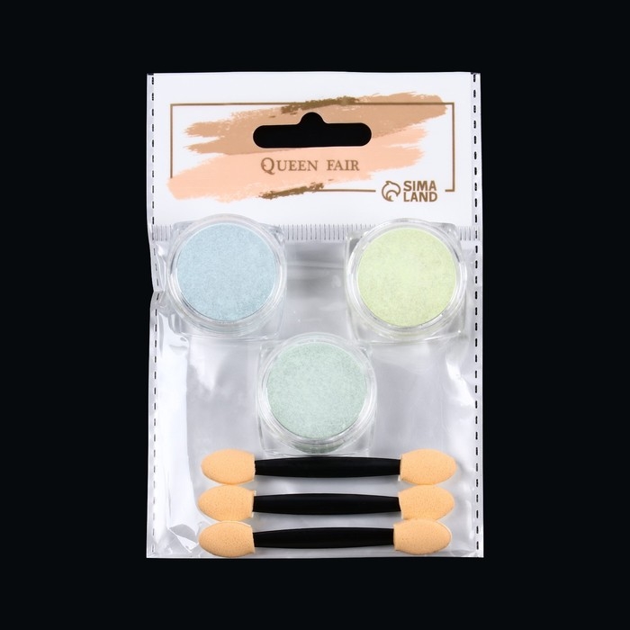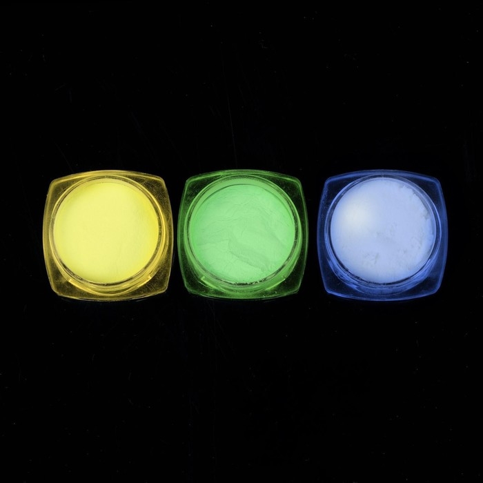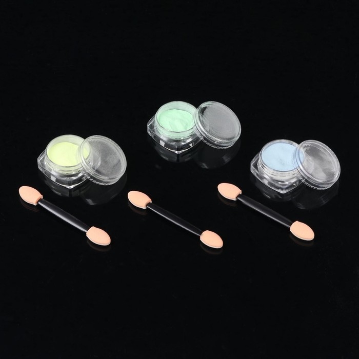 Втирка для ногтей флуоресцентная, набор 3 баночки, с аппликаторами, цвет голубой/жёлтый/зелёный