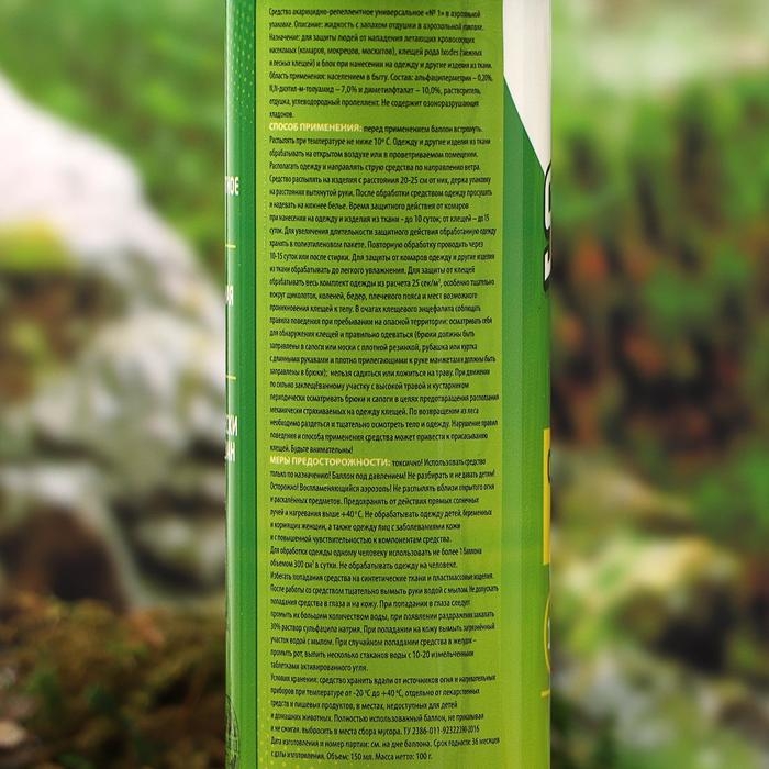 ОписаниеСредство инсектоакарицидно-репеллентное "Клещ-капут спрей". Для защиты людей от иксодовых клещей и блох (переносчиков возбудителей опасных заболеваний человека), а также от летающих кровососущих насекомых (комаров, мокрецов, москитов) при обработке одежды и других изделий из ткани.Применение: обрабатывать одежду на открытом воздухе (вне помещений). Располагать одежду и направлять струю средства по направлению ветра, средство распылять на изделия с расстояния 20-25 см от них, держа упаковку на расстоянии вытянутой руки из расчета 1 нажим на распылительную головку на участок 10 см х 10 см (1 кв.дм). Особенно тщательно обработать брюки вокруг щиколоток, голеней, коленей, бедер и мест возможного проникновения клещей и блох к телу. Одежду просушить и надеть на нижнее бельё. Повторную обработку одежды проводить через 10-15 суток или после стирки.Время защитного действия от клещей и блох до 15 суток, от летающих кровососущих насекомых до 10 суток, при условии хранения обработанной одежды в закрытом полиэтиленовом пакете.Нарушение правил поведения и способа применения средства может привести к присасыванию клещей.Меры первой помощи: при попадании в глаза - обильно промыть их водой, 2% раствором пищевой соды, закапать 30% раствор сульфацил натрия, при болезненности - 2% раствор новокаина. При случайном проглатывании - прополоскать рот водой. После этого выпить 1-2 стакана воды и и активированного угля (1 г на 1 кг веса). При ингаляционном отравлении вывести пострадавшего на свежий воздух, прополоскать рот водой. После оказания первой помощи обратиться к врачу.Меры предосторожности: токсично! Огнеопасно! Одному человеку использовать для обработки не более 1 флакона в сутки. Не обрабатывать одежду на человеке и не надевать ее до полного высыхания. Одежду для детей, беременных и кормящих женщин обрабатывают другие лица. Лицам с заболеваниями кожи и повышенной чувствительностью к химическим веществам применять средство с осторожностью. Избегать попадания средства в органы дыхания, рот, глаза и на кожу. После работы со средством тщательно вымыть руки с мылом. Избегать попадания средства на синтетические ткани и пластмассовые изделия.Хранить при температуре от -20°C до +40°C, отдельно от лекарственных средств и пищевых продуктов, в недоступном для детей месте. Беречь от нагрева и влаги. Не допускать попадания средства в сточные, поверхностные или подземные воды и в канализацию.СоставСостав средство от насекомых: альфациперметрин (0,23%), N,N-диэтилтолуамид (10%), спирт изопропиловый (84,17%), функциональные добавки.